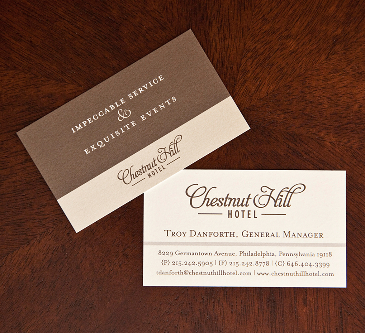 The cohesive brand system unites all visual elements under a polished, consistent aesthetic that reflects the hotel’s elegance and captures the charm and sophistication of Chestnut Hill. From signage and stationery to the website and marketing materials, each piece now communicates a hospitality experience that feels elegant, personal, and connected to the neighborhood that surrounds it.