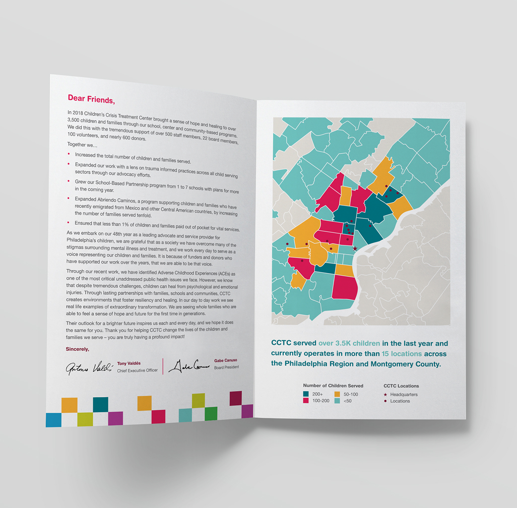 The resulting system gives CCTC a dependable design foundation that continues to grow with the organization. Materials feel fresh and engaging while remaining rooted in the mission, allowing for more ambitious fundraising goals as previous targets are achieved. New initiatives and ideas can build on what already exists, making it easier to evolve programming, communications, and events without losing cohesion.